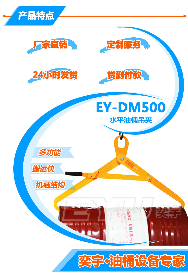 油桶水平吊鉤的主要用途:EY-DM500油桶水平吊鉤適用于配合吊車或叉車貨叉吊進(jìn)行吊運(yùn)標(biāo)準(zhǔn)鋼制油桶或帶固定圈的塑料桶簡(jiǎn)單實(shí)用,價(jià)格便宜。