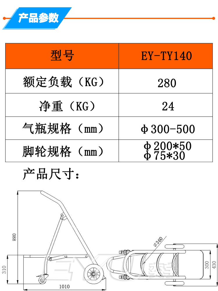 氧氣瓶搬運(yùn)車詳細(xì)參數(shù):